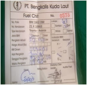 Chit (Bon Pengisian BBM) Dari Pihak SPBU Balai Raja.